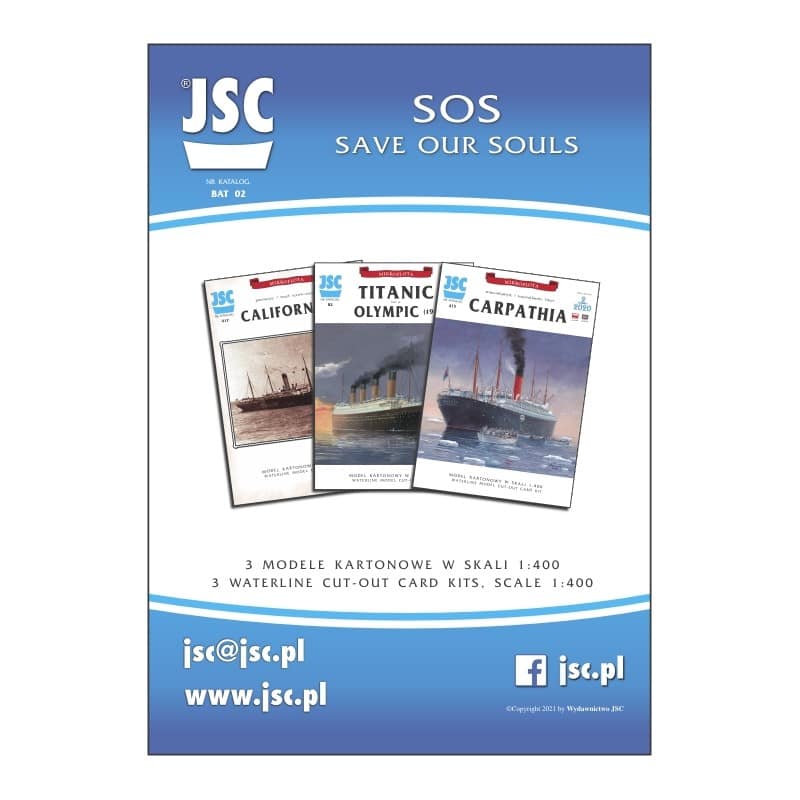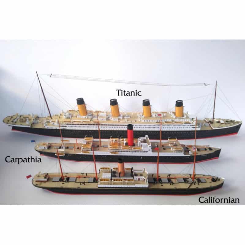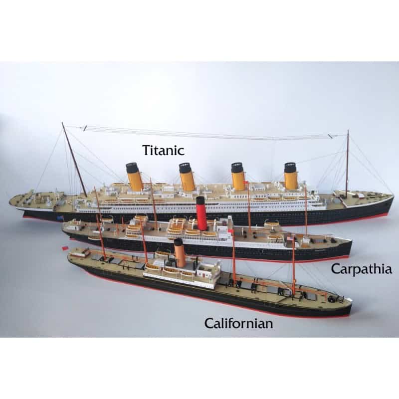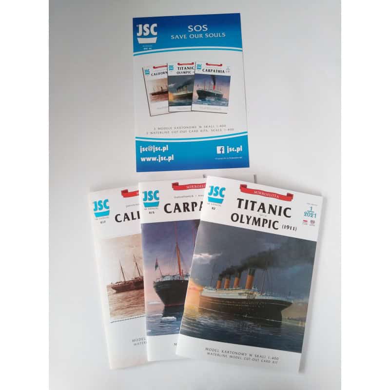 The set consist of three models of ships which were involved in Titanic disaster. Liner Titanic (JSC 82), liner Carpathia (JSC 415) and steamer Californian (JSC 417).